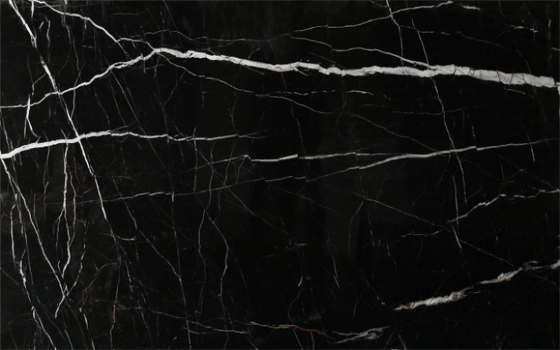 Galaxy marble has a luxurious and modern look with a deep black background and diagonal white veins. Its polished and shiny surface symbolizes elegance and strength in architecturally significant spaces.