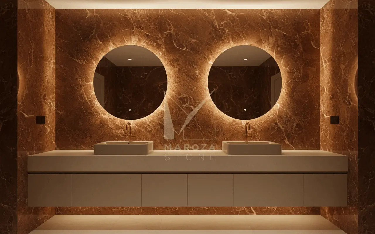 Empire marble with a dark brown background and gold-cream veins has a warm and royal look.